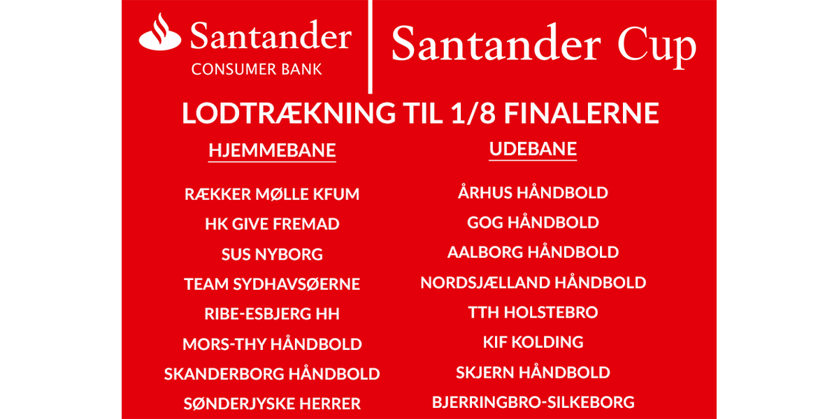 Så er der trukket lod til 1/8 finalerne i Santander Cup.