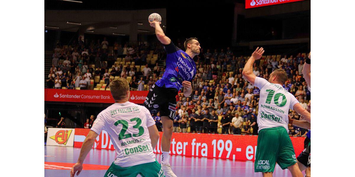 Selve kampen havde MTH i teten fra start af. Ja faktisk førte de fra start til slut. Og det var bestemt ikke til at se, at den lange kamppause havde sat sig i de blåklædte. Der var bid i tacklingerne og svirp i afslutningerne, og selvom Skjern hang godt i i første halvleg via især en flot fightende Bjarte Myrhol, var det som om, at de modige Mors-Thy-spillere hele tiden var et skridt foran.